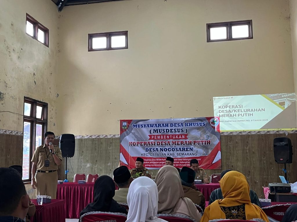 Nogosaren – 19 Mei 2025Pemerintah Desa Nogosaren, Kecamatan Getasan, Kabupaten Semarang, menggelar Musyawarah Desa Khusus (Musdesus) dalam rangka pembentukan Koperasi Merah Putih Desa Nogosaren. Kegiatan ini merupakan tindak lanjut dari Implementasi Instruksi Presiden (Inpres) No. 9 Tahun 2025 tentang percepatan pembangunan ekonomi berbasis masyarakat di tingkat desa dan kelurahan. Acara yang berlangsung di Balai Desa […]