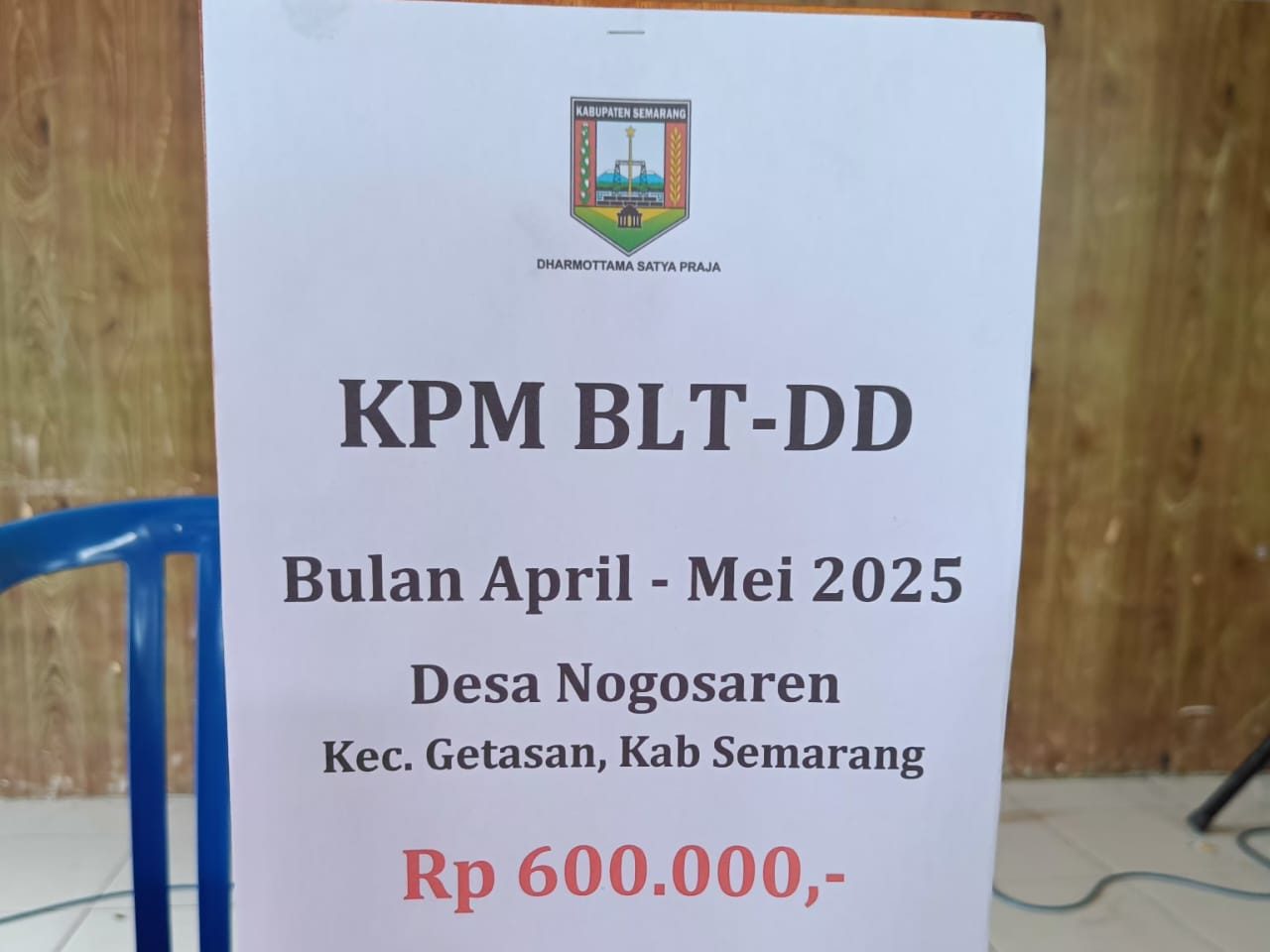 Nogosaren, Kecamatan Getasan – Kabupaten Semarang, 28 Mei 2025 – Pemerintah Desa Nogosaren kembali menyalurkan Bantuan Langsung Tunai Dana Desa (BLT-DD) kepada warga yang masuk dalam kategori Keluarga Penerima Manfaat (KPM). Untuk periode April hingga Mei 2025, sebanyak 23 KPM menerima bantuan tunai sebesar Rp 600.000,- per keluarga.